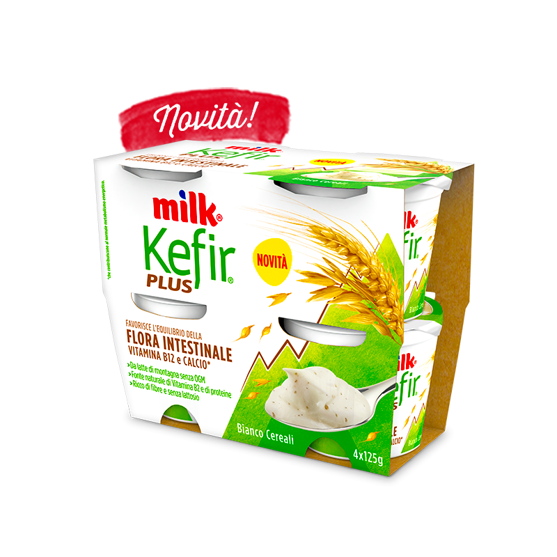 Milk Kefir Plus Flora Intestinale Bianco Cereali con Vitamina B12 e Calcio 6x100g
