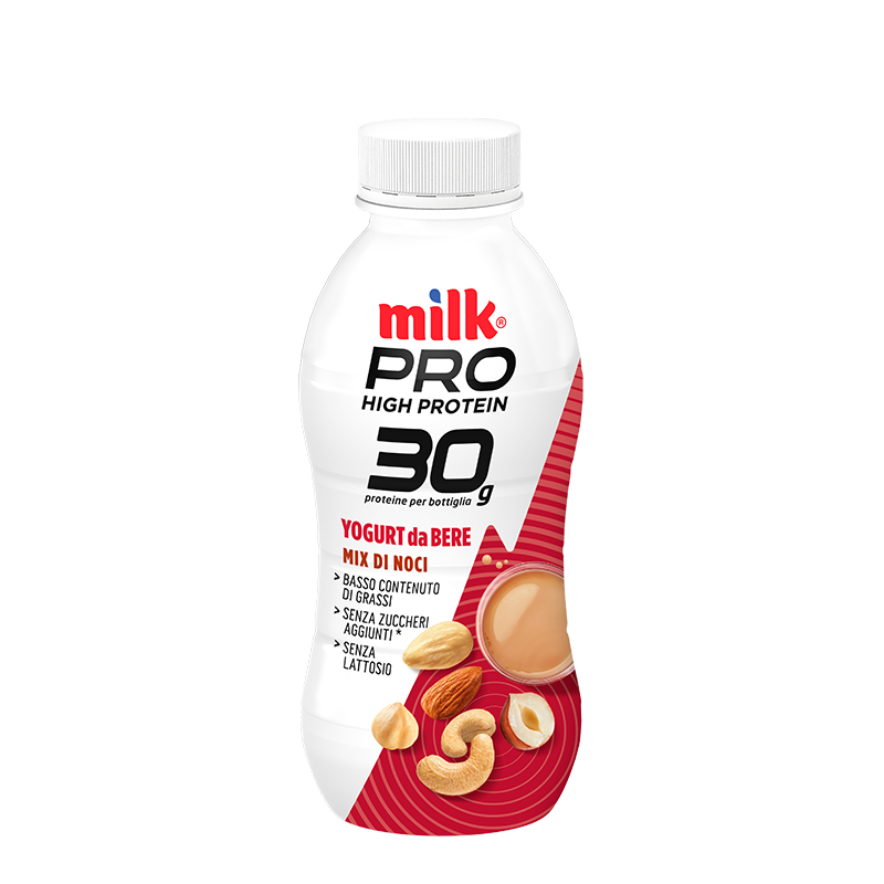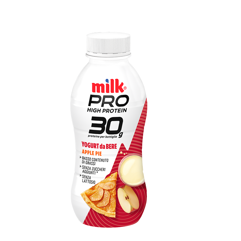 Uno yogurt da bere al gusto Apple Pie con 30g di proteine per bottiglia, senza zuccheri aggiunti e senza lattosio