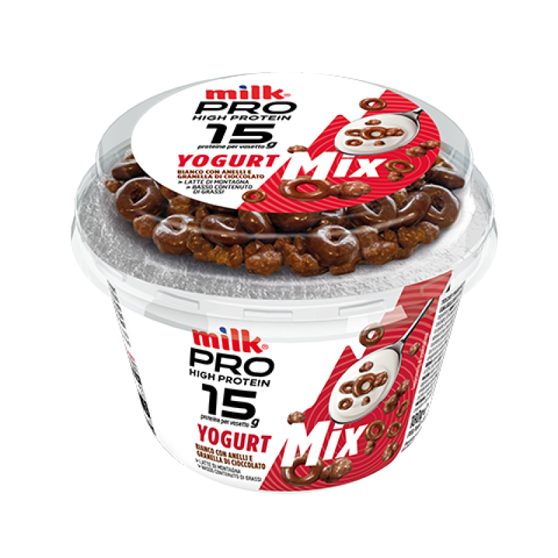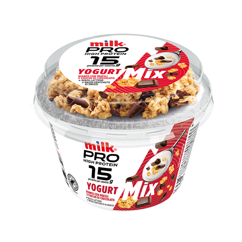 Un fresco yogurt magro ricco in proteine (15g per vasetto), con nel top deliziosi wafer ricoperti di cioccolato.