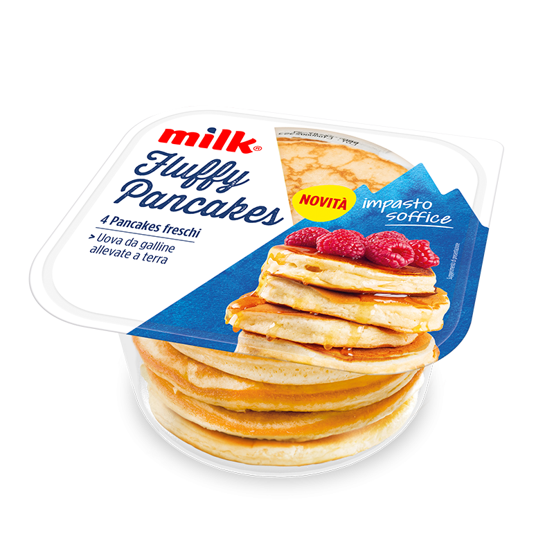 Deliziosi pancakes proteici freschi, ricchi in proteine, a base di farina, latte scremato e uova, con 60% di zuccheri in meno rispetto alle prime tre referenze del mercato per vendite in volume, a totale Italia Iper+Super+LSP, nell’anno solare 2021, ad esclusione dei prodotti a Marchio del Distributore (FONTE IRI)